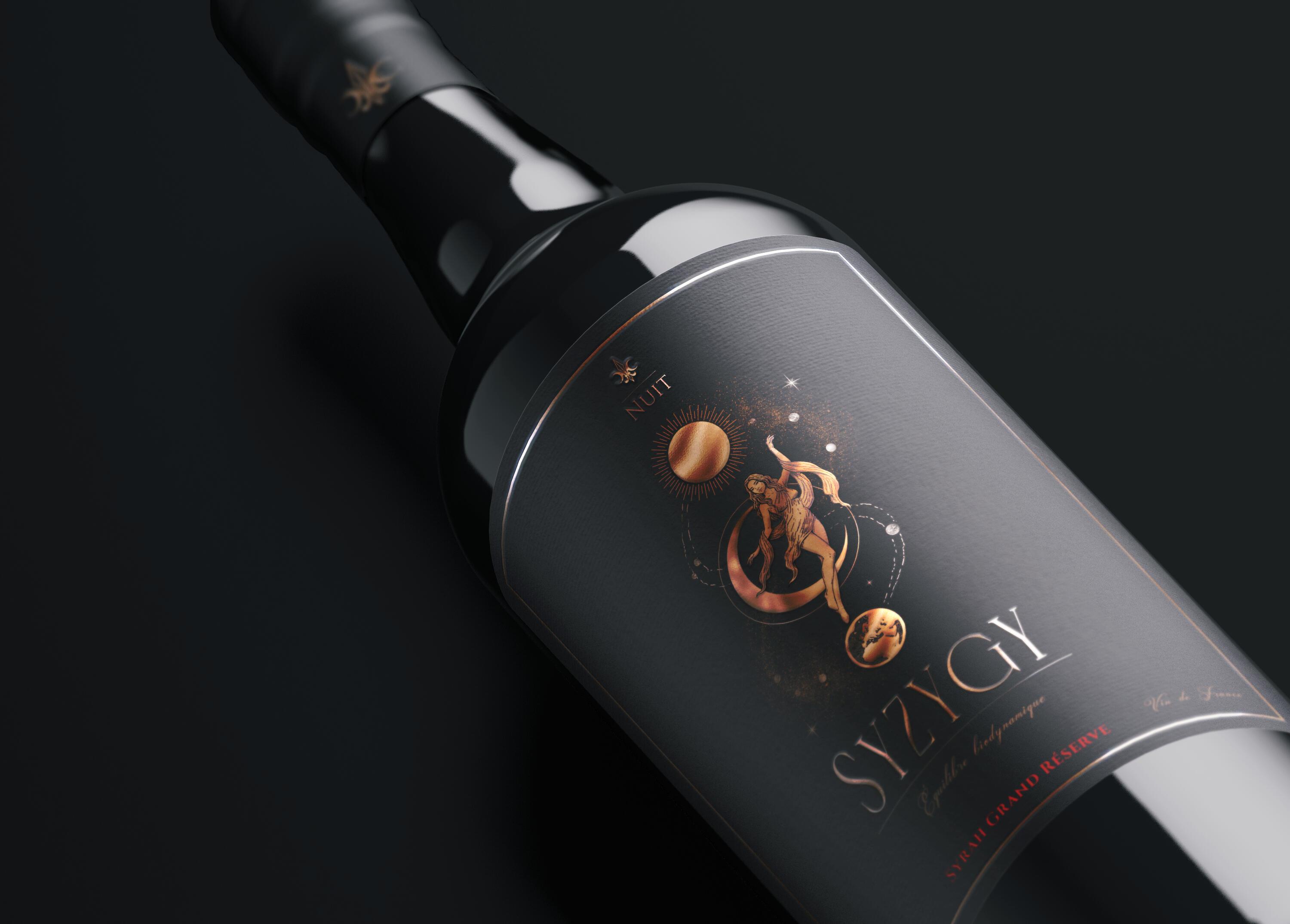 EN The Nuit Biodynamique line is born from Biodynamic Balance: the philosophy that wine is not just yeast and grapes, but the result of a dialogue between the Earth and the stars. Exploring the French terroir, the challenge was to translate this invisible energy into a visual identity that unites the rigor of sacred geometry with the fluidity of classical mysticism. In this campaign, we abandoned the cliché of esoteric aesthetics: saturated colors and dazzling brightness give way to a sober and technical aesthetic. The goal is to translate magic as a present and palpable force, showing that the cosmos is not beyond us; it is operating now, through gravity, cycles, and sap.BR A linha Nuit Biodynamique nasce do Equilíbrio Biodinâmico: a filosofia de que o vinho não é apenas fermento e uva, mas o resultado de um diálogo entre a Terra e os astros. Explorando o terroir francês, o desafio foi traduzir essa energia invisível em uma identidade visual que une o rigor da geometria sagrada à fluidez do misticismo clássico. Nesta campanha, abandonamos o clichê da estética esotérica: as cores saturadas e o brilho ofuscante dão lugar a uma estética sóbria e técnica. O objetivo é traduzir a magia como uma força presente e palpável, mostrando que o cosmos não está além de nós; ele está operando agora, através da gravidade, dos ciclos e da seiva.