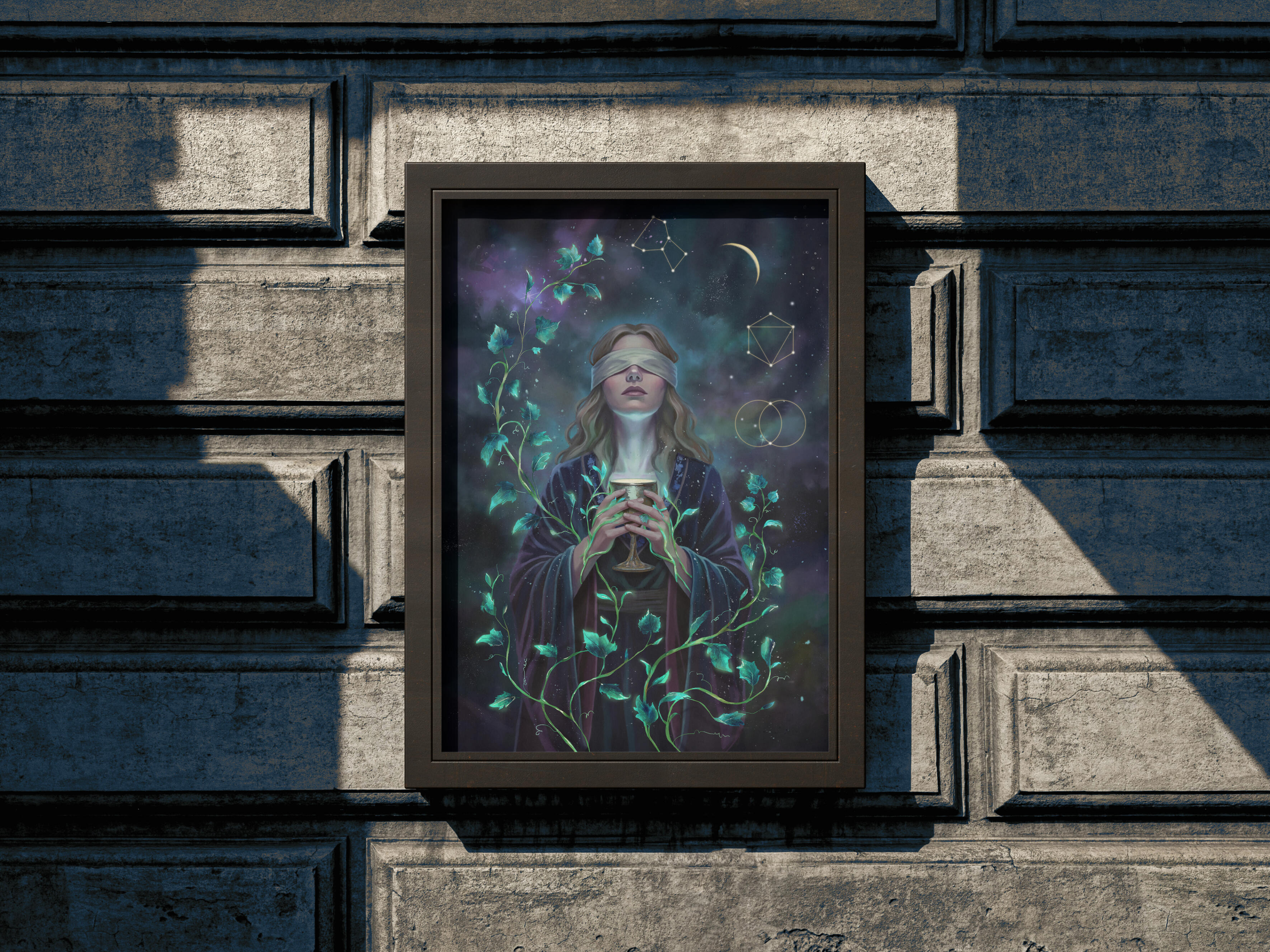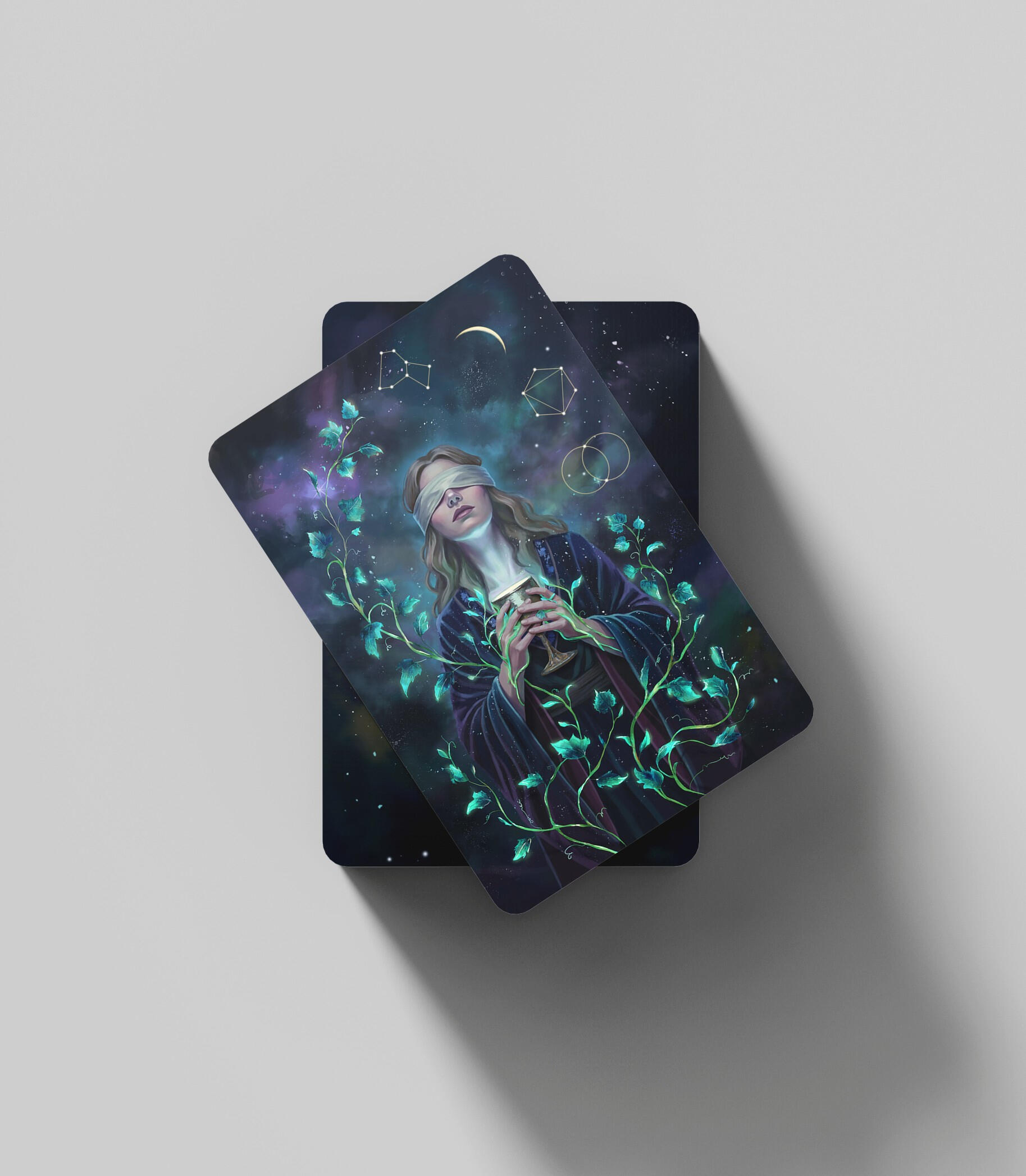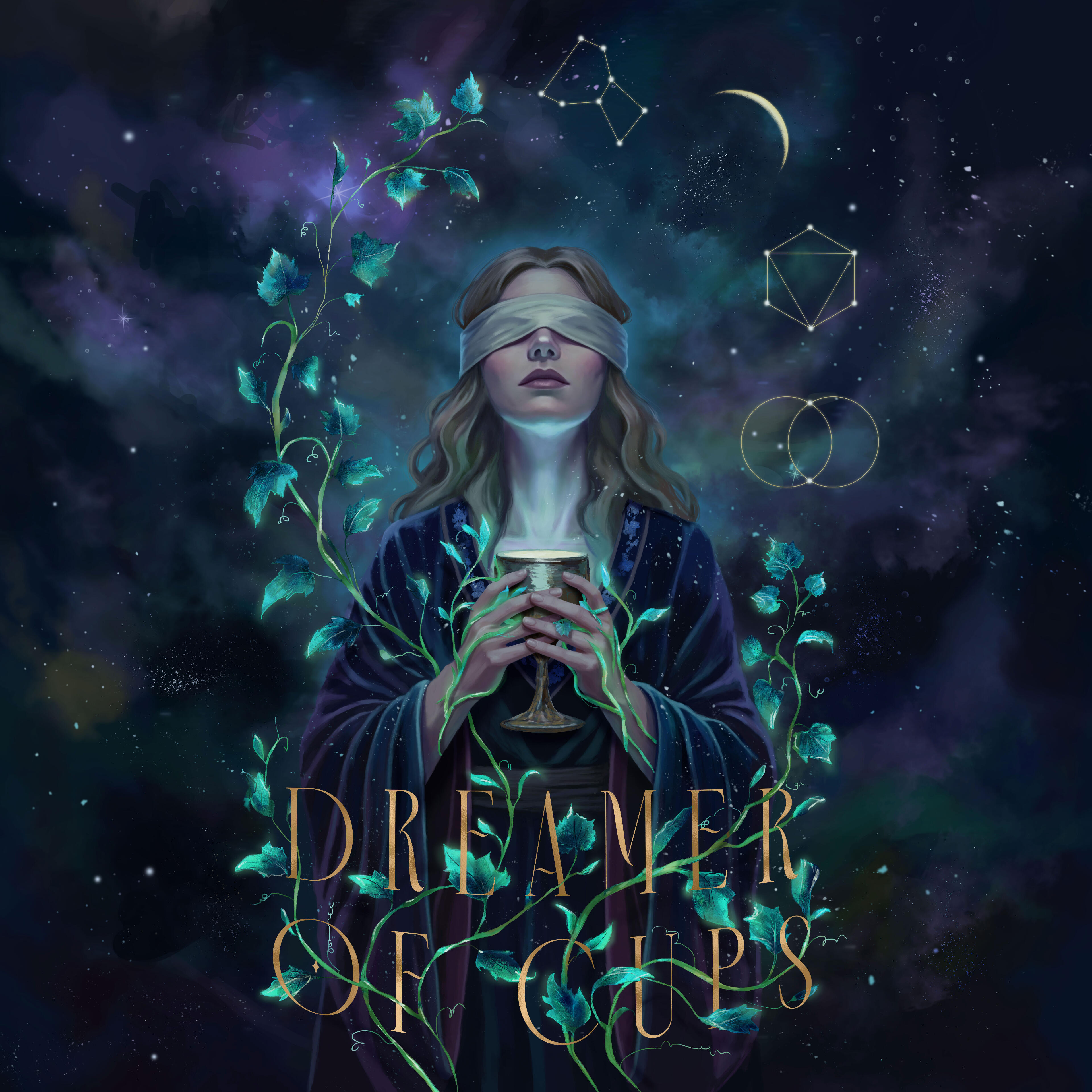 A Priestess of Dreams navigates the ocean of her subconscious, where willful blindness allows her soul to blossom from the void, guided by the hidden order of the cosmos.