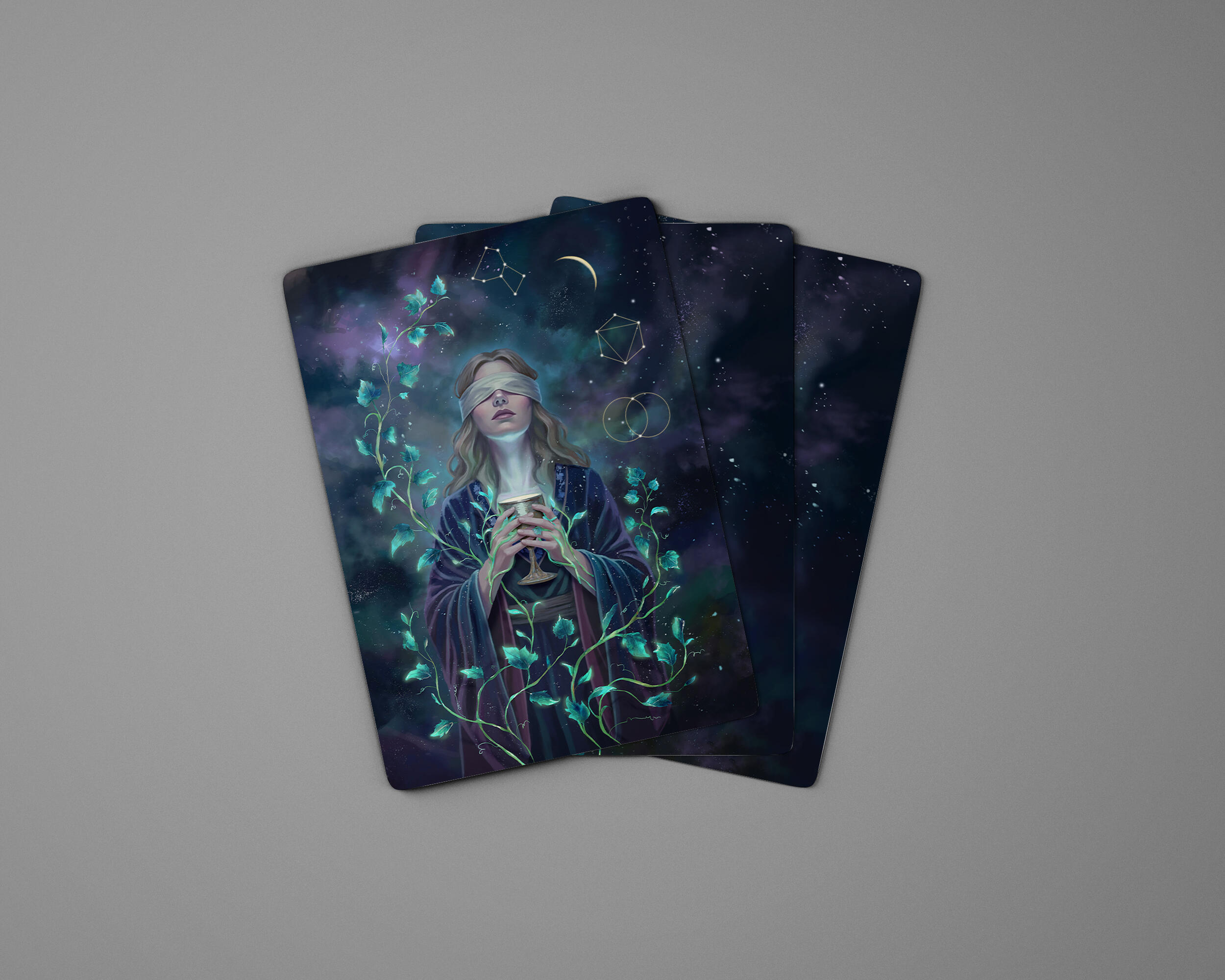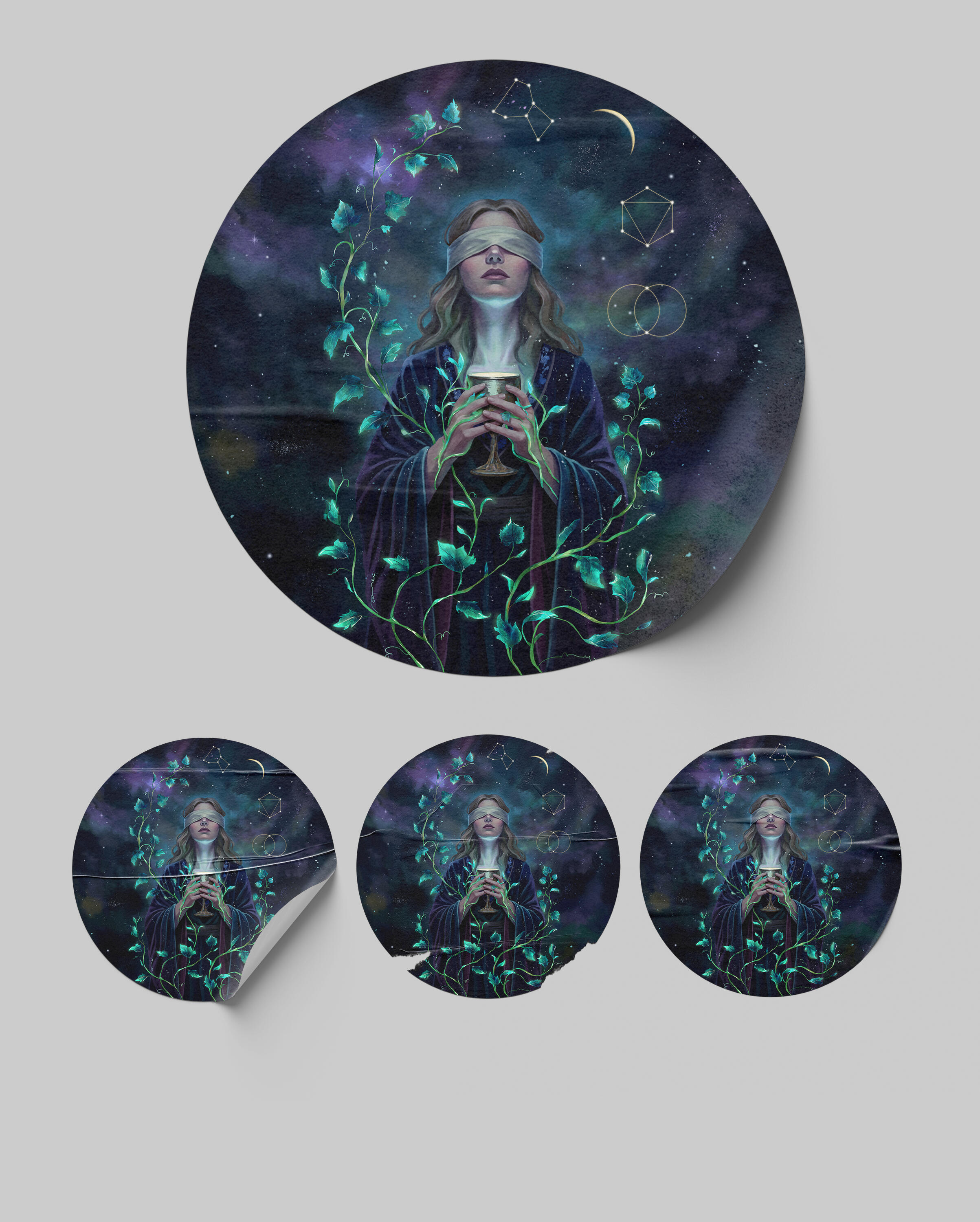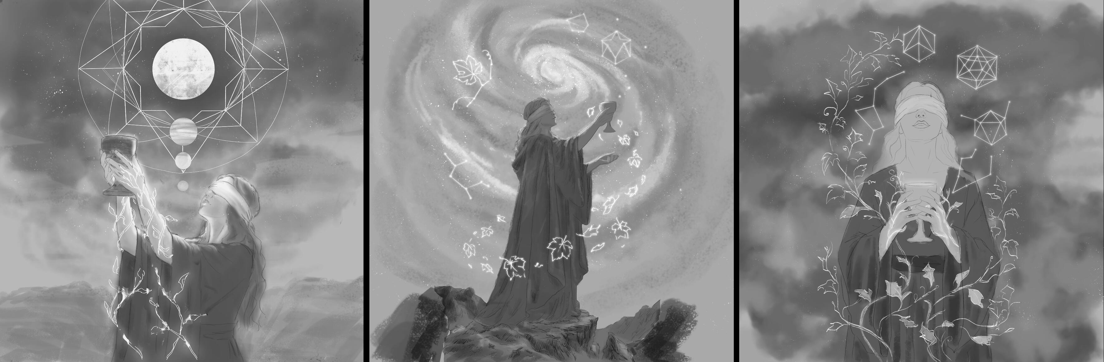 A Priestess of Dreams navigates the ocean of her subconscious, where willful blindness allows her soul to blossom from the void, guided by the hidden order of the cosmos.