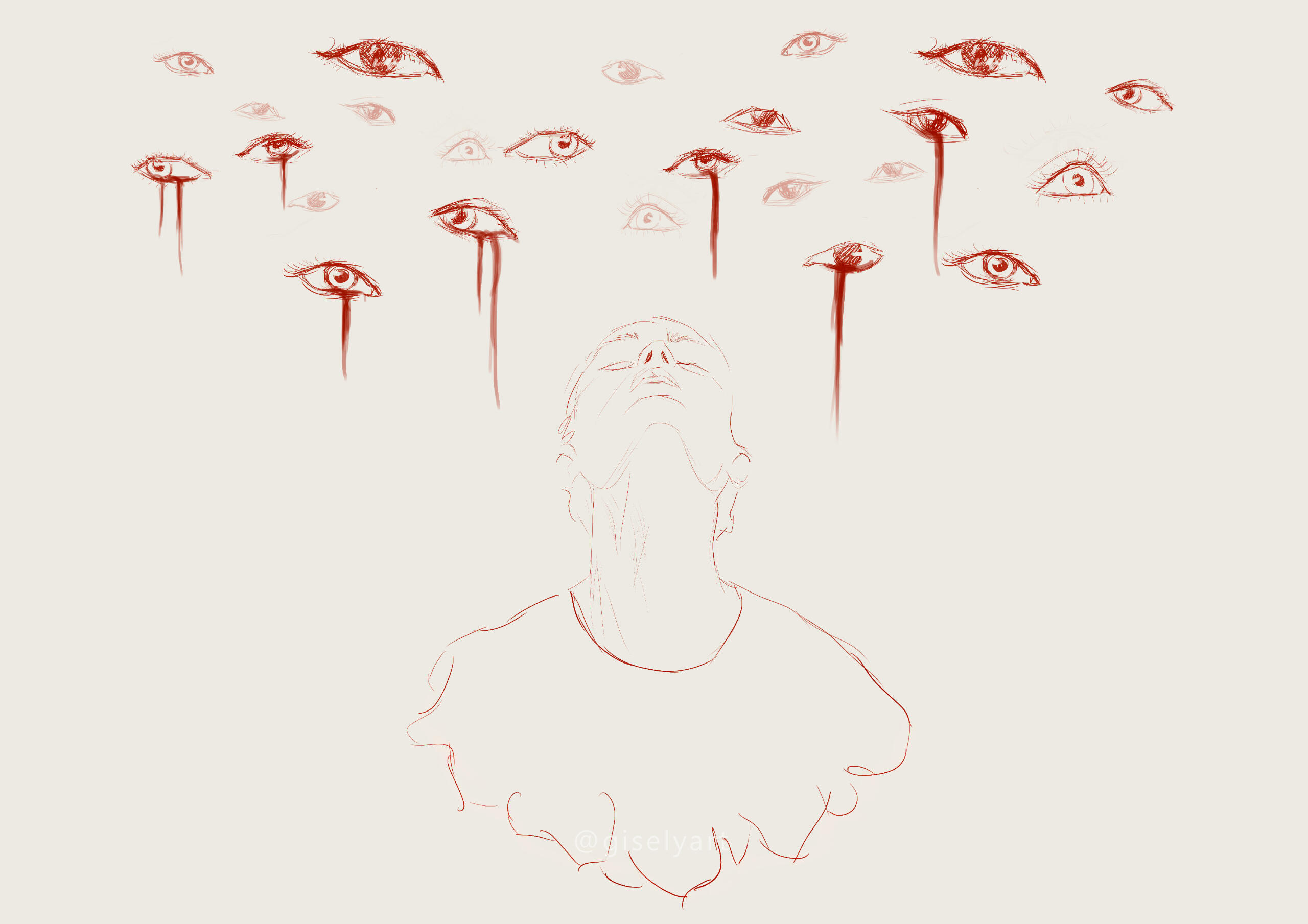 EN With "Misophonia," I use my signature aesthetic—Dark Romanticism—to give form to an invisible disorder. I seek to create a bridge between the clinical account and my own human experience, exposing the layers of anxiety and isolation that accompany severe sound intolerance.The iconography of the piece is deliberate: the knives represent the painful intrusion of noise, while the fiery element evokes my visceral fight-or-flight response. By addressing misophonia through this artistic lens, my intention is to grant dignity and visibility to a condition often neglected by common perception, transforming a silent affliction into a tangible visual narrative.My work does not end in pain, but in the achievement of autonomy. Through a journey of self-care and mental control, I propose a reflection on respect for individual space and the importance of introspection tools as defense mechanisms in an inherently noisy world.----BR Com "Misofonia", utilizo minha assinatura estética para dar forma a um distúrbio invisível. Busco criar uma ponte entre o relato clínico e a minha própria experiência humana, expondo as camadas de ansiedade e isolamento que acompanham a intolerância severa ao som.A iconografia da peça é deliberada: as facas representam a intrusão dolorosa do ruído, enquanto o elemento ígneo evoca minha resposta visceral de luta ou fuga. Ao abordar a misofonia sob esta lente artística, minha intenção é conferir dignidade e visibilidade a uma condição frequentemente negligenciada pelo senso comum, transformando uma aflição silenciosa em uma narrativa visual tangível.Meu trabalho não se encerra na dor, mas na conquista da autonomia. Através de uma jornada de autocuidado e controle mental, proponho uma reflexão sobre o respeito ao espaço individual e a importância de ferramentas de introspecção como mecanismos de defesa em um mundo inerentemente ruidoso.